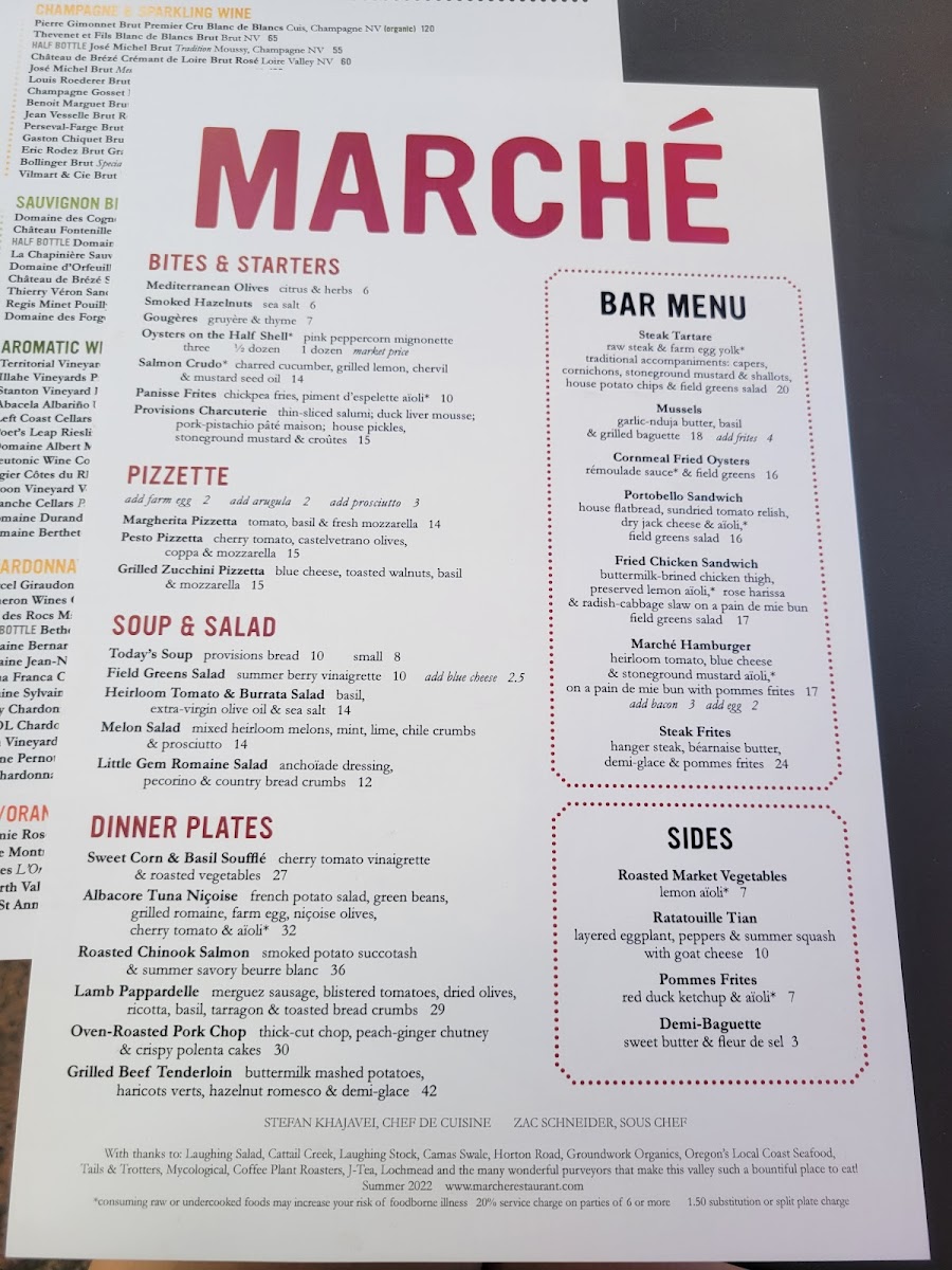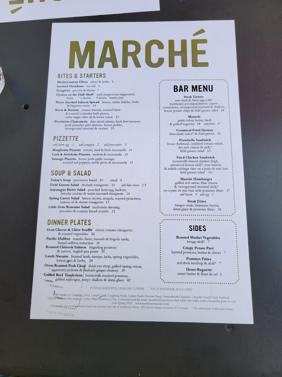 Nestled in the vibrant heart of Eugene, Oregon, Marché invites discerning diners to indulge in a taste of France with its exceptional menu and warm atmosphere. This French restaurant, located at 296 E 5th Ave, embodies the culinary artistry that French cuisine is renowned for, making it a must-visit destination for both casual diners and food enthusiasts alike.